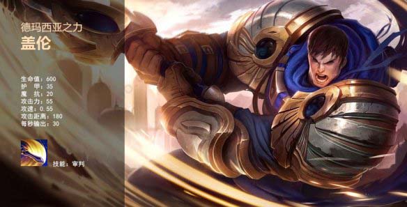 技能介绍:审判,盖伦快速地围绕自身旋转他的剑刃,变得免疫魔法伤害,同时会对附近的敌人造成伤害。