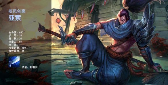 技能介绍:斩钢闪,亚索向前戳刺来造成伤害。在第三次施放时,亚索会吹出一道龙卷风,来对一条直线上的敌人造成伤害和击飞效果。