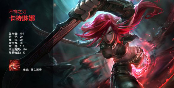 技能介绍:死亡莲华,卡塔琳娜引导并朝附近的若干敌人投掷匕首,对他们造成伤害并减少治疗效果。