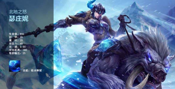 技能介绍:冰川风暴,艾尼维亚引导一次大型冰风暴,对其中的敌人造成伤害。棋子费用:5