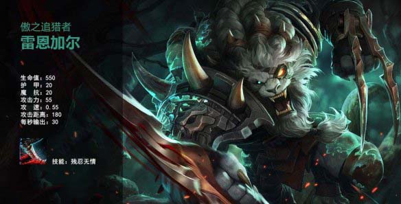 技能介绍:残忍无情,雷恩加尔跃向伤势最近的敌人并对其进行背刺。
