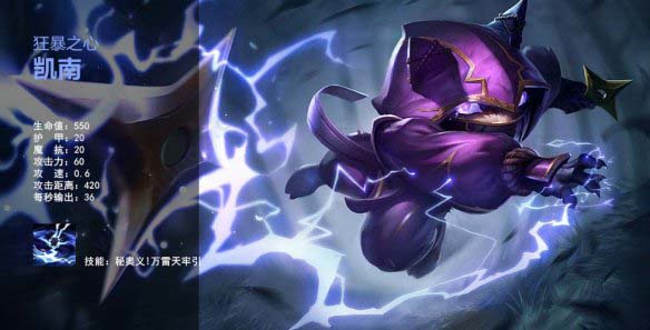 技能介绍:秘奥义万雷天牢引,凯南召唤一阵风暴来环绕自身,对其内的敌人造成伤害和晕眩效果。
