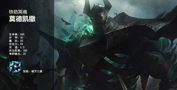 技能介绍:破灭之锤,莫德凯撒朝他前方挥舞他的权杖,沿直线造成伤害。