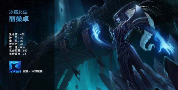 技能介绍:冰封陵墓,丽桑卓将目标封入冰块,并对附近的敌人造成伤害。在半血以下时,丽桑卓会将自己封入冰块,并变得无法被选取。