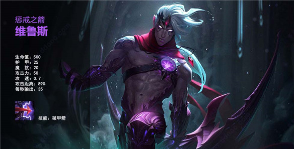 技能介绍:破甲箭,韦鲁斯引导并射出一支箭,对一条直线上的所有敌人造成伤害。