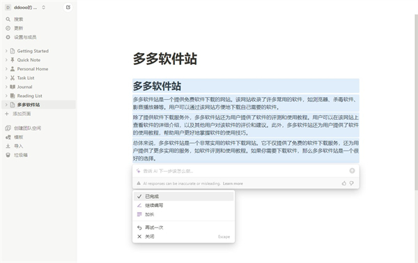 3、接下来就可以看到ai已经编写完成,还可以根据选项来继续使用。