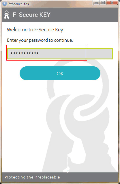 3、从上面的界面不难看出,F-Secure Key支持同步设备,如安卓或者IOS设备都可以,同时支持将密码码导出成文件,防止重装系统后丢失,并且如果你想要一个复杂的密码,也直接可以在F-Secure Key中自动生成。下次进入是需要重新正确输入密码才能够登录。