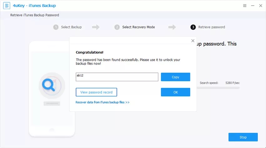使用先进的算法,4ukey itunes backup可以快速分析备份加密过程,并高精度地找到正确的密码。
