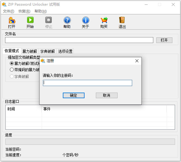 zip password unlocker是目前网络上非常优秀的一款zip密码破解工具,zip密码暴力解锁器,该软件界面友好,功能强大,拥有恢复模式、暴力破解、字典破解等功能,能够支持所有版本的WinZIP/ZIP压缩文件,可以轻松帮助用户破解zip密码,有此需要的朋友可以免费下载收藏。另外本站这里提供的是zip password unlocker破解版,已经汉化破解,用户随意输入注册码即可成功激活软件,功能全面解锁可用,快下载体验吧。