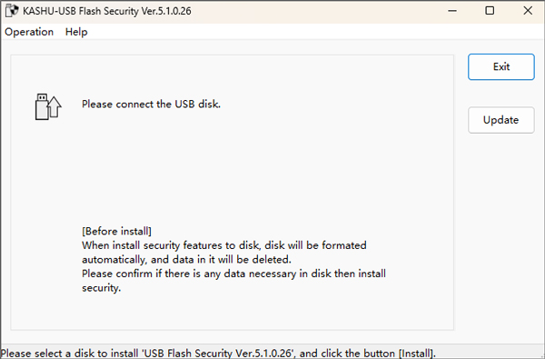 USB Flash Security是一款非常实用的u盘加密工具,该软件可以非常好帮助用户保护u盘文件的安全,采用的是加密算法中快速识别和加密强度的AES加密技术。通数据将通过在USB闪存驱动器中写入自动加密,并通过从USB闪存盘读取自动解密,只有成功输入正确密码才可打开软件,更改其中的文件,并且软件还拥有指导锁定功能,当您将其删除时,Usb闪存驱动器将自动被锁定,非常的安全强大,可以完美的保护你u盘中的所有文件。同时USB Flash Security操作简单,用户只需要启动软件,点击install就可以将安全工具安装到USB闪存驱动器上,而且提供了安全访问控制功能,用户可以通过设置密码等方式来保护USB闪存驱动器的安全性,有需要的用户可以在本站免费下载使用。