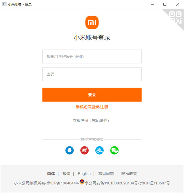 1、解压后打开小米手机解锁工具,并登录小米账号;