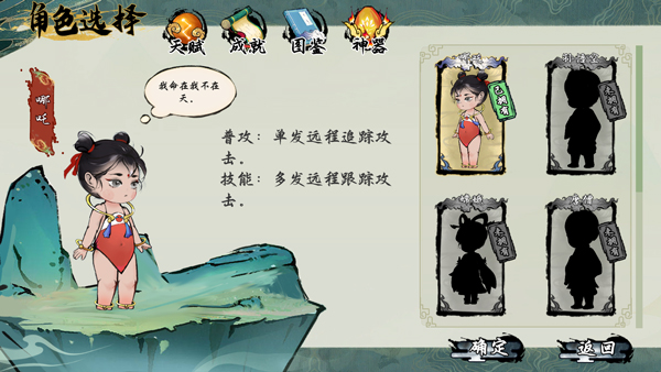 3、选择一个角色,现有哪吒、孙悟空、嫦娥、唐僧四个角色可以选择;