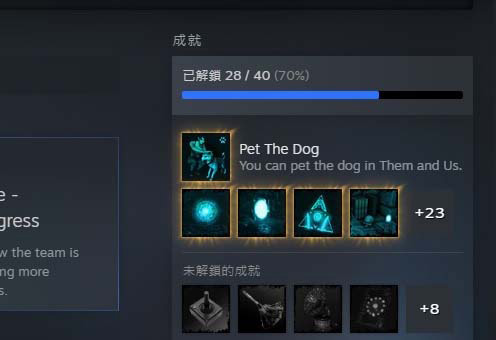 随便解锁几个成就一看竟然全是金边成就,也就是说达成这些成就的人数低于10%。目前拿到秘境钥匙的成就达成率仅仅4.1%,进去摸过狗的成就达成率竟然又降到3.5%,达成恐龙危机结局的仅仅2.0%。