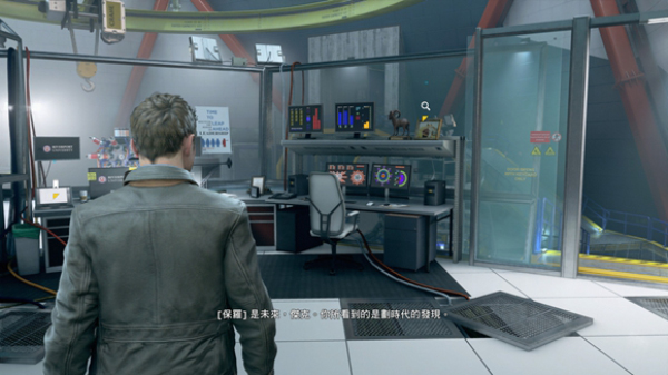 11、进入时光机实验场,沿路进入第一个小房间,如下图,右侧高处的照片是第9/10个文件(13/16),左侧还有第2/3个电脑(14/16)。