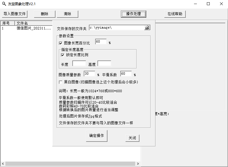 2、再点击操作处理,可以自行设置图像比例,图像质量参数;