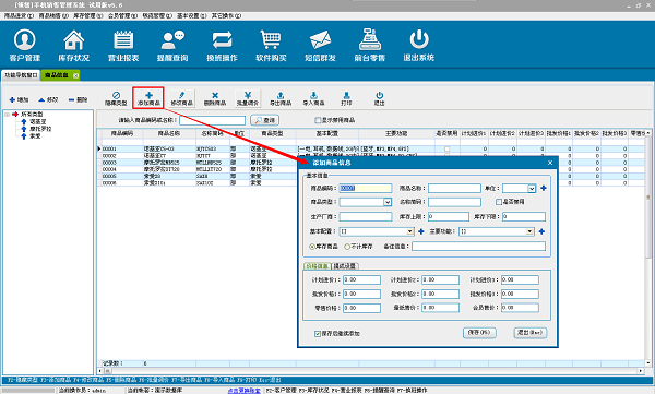 3、商品信息设置在系统设置中设置商品、客户、供货商、员工、操作员、仓库等信息。
