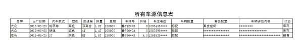 2、查询管理:所有车源查看、仓库车源查看、所有客源查看、成功客源查看、失败客源查看。
