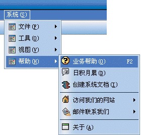 单击“系统”菜单→“帮助”→“业务帮助”(或者按F2键)显示“帮助”窗口。可从“帮助窗口”中获取帮助。