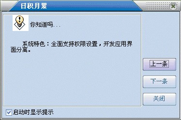 单击“日积月累”命令,弹出“日积月累”对话框,在“日积月累”对话框中,选中对话框下面的“启动时提示”复选框。