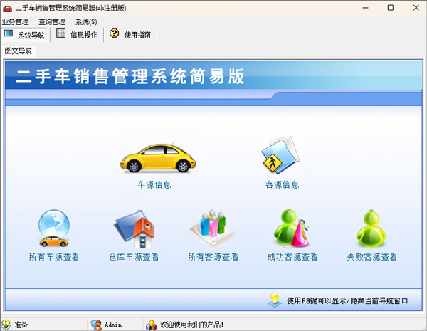 二手车销售管理系统简易版是宏达管理软件专为二手车行业市场打造的一款集销售+管理系统为一体的软件,软件核心主要提供了业务管理,也就是车源信息和客源信息的录入和查询功能,再有就是查询管理,包括所有车源、仓库车源、所有客源、成功客源及失败客源的查看,并且它还支持数据与excel的导出与导入,这样既方便管理的数据统计,也方便车源及客源的信息掌握,可谓是管理者的好帮手!相信熟悉这款软件的朋友,可能都听过《二手车销售管理系统》,而区别不仅在“简易版”的字眼,相比之下,此版本没有收车管理,但对于客户寄存卖车提供了方便。