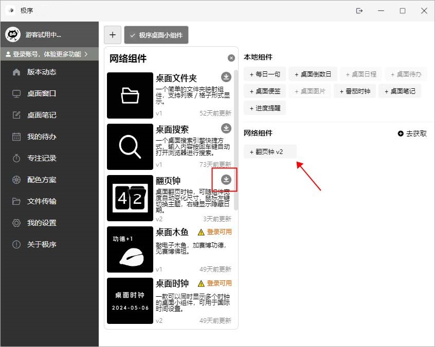 获取完毕后,我们就可以点击这个“桌面清单”,像本地组件一样加入到桌面窗口了。网络组件和本地组件是一样的,可以搭配使用。