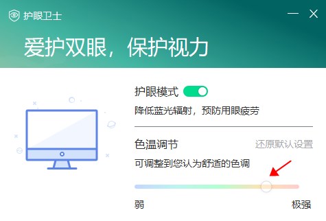 4、将滑块向右移动,屏幕颜色变暖,可有效防护用户的眼睛。