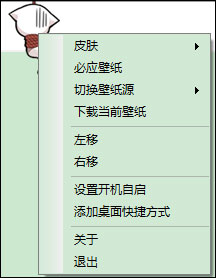 3、同时右击可对其进行更新皮肤、壁纸、下载壁纸、左移、右移、设置开机自启等等操作,