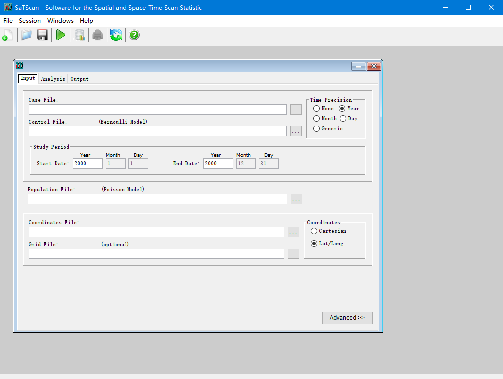 6、对于离散扫描统计,数据可以是聚集在普查道,邮编,县或其他地理水平,或可能有独特的坐标为每个观察。SaTScan调整的基本均匀的背景人口。它也可以适应任何数量的绝对变量由用户提供,以及时间的趋势,称为时空集群和数据丢失。它可以扫描多个数据集的同时寻找集群发生在一个或更多的人。