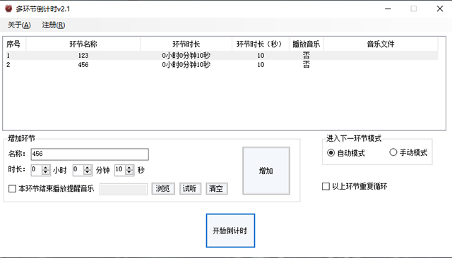 2、每个环节结束之后,可以选择是自动模式还是手动模式(手动开始下一环节倒计时)。