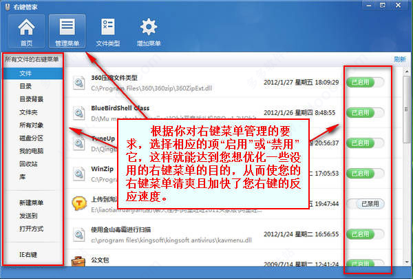 11、并能按照文件类型对右键菜单进行分类管理
