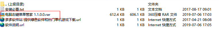 1、第一步,在本站下载安装完成后,解压压缩【电脑右键菜单管家 1.1.0.0.rar】