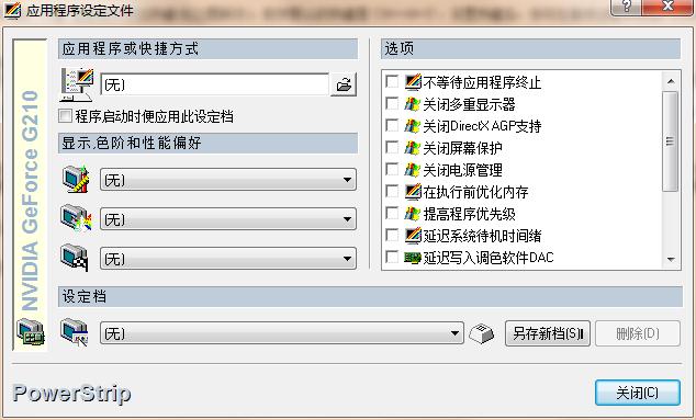 PowerStrip允许你预设打开多媒体文件的程序,在工具列上单击小按钮就能打开软件预设的媒体播放程序,而你也可以在“预设”窗口为按钮更改它所关联的媒体播放程序。