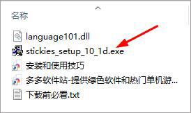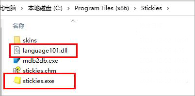 3、将安装包中的language101.dll.放入与stickies.exe 相同的目录中,如:c:\Program Files (x86)\stickies;