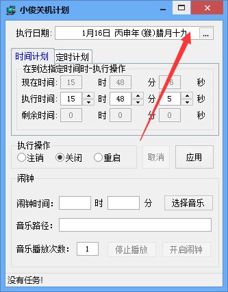 小俊关机计划是一款绿色小巧、操作简单的电脑定时执行计划工具,它能够支持电脑进行注销、关闭和重启三种操作方式,并且还可以设置闹钟。同时它还拥有直观的操作界面,拥有时间计划和定时计划两种功能,可以实现定时关机、定时注销、重启、闹钟提醒、日历查询等,可自定义音乐,非常实用便捷。此外,用户在使用软件内置的闹钟功能时可以指定自己喜爱的音乐的路径,非常方便有需要就下载使用!