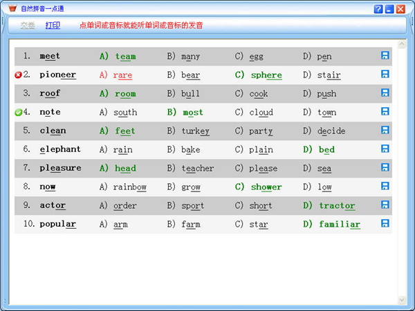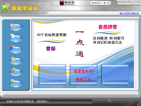 《我爱学音标》软件完整概括了自然拼音的113条发音规律,辅以1000多个真人标准发音的单词,加上跟读对比、单词听写、音标听写、多种形式的选择题练习,是英语初学者几天之内就能迅速掌握自然拼音,为以后的进一步学习打下良好的基础。