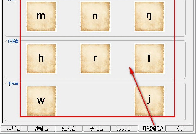 8、对其他的辅音进行快速的显示,包括了鼻音、拟拼音、半元音等。