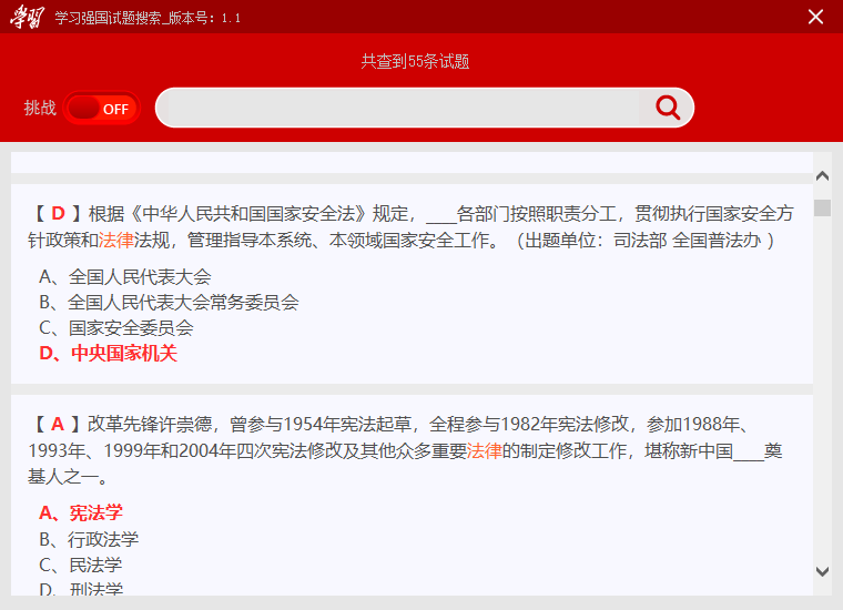 学习强国试题搜索器本地版是针对学习强国而开发的一款试题库,已经收录了海量的试题,包括本地4413条,网络4078条,通过学习,可以帮助用户更好的提高思想觉悟和政治思想。