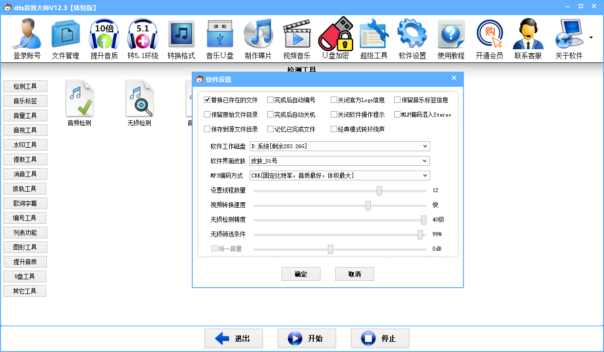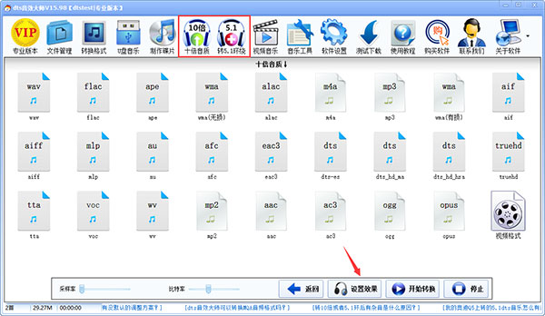 批量音乐转换(含dts、mlp格式);高级参数设置;支持2.0、5.1、有损、无损互转;支持29种格式。