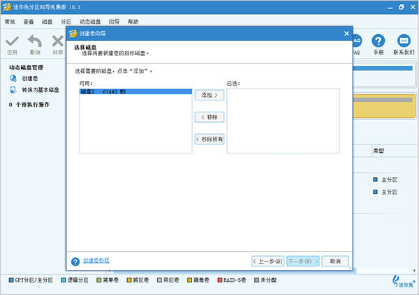 3、通过仅选择相应的磁盘,然后单击“添加”,选择要创建卷的目标磁盘将此磁盘添加到右侧框中的选项。之后,单击“下一步”按钮继续;
