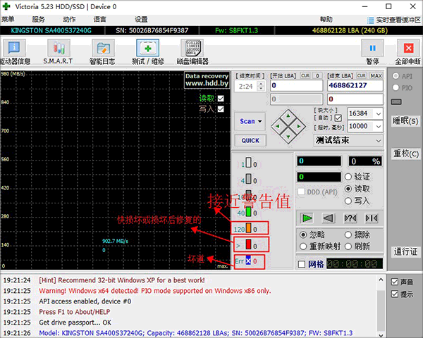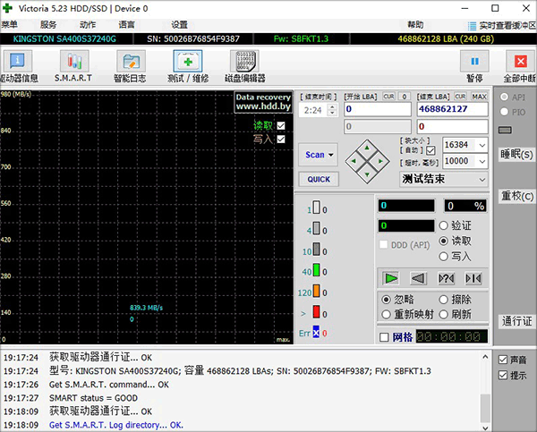 擦写(ERASE)主要是对扫描到的坏道进行擦除,对于一些CRC错误,也就是我们常说的逻辑错误,或者不是很严重的坏块可以起到修复的作用。