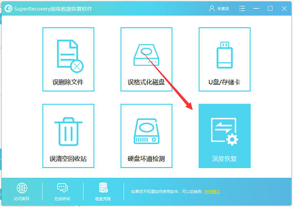 1、首先打开超级硬盘数据恢复软件的数据深度恢复功能。