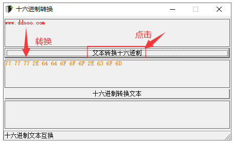 2、双击十六进制-文本.exe,不需要安装即可直接使用,然后在第一个选框中输入您需要转换的信息,点击文本转换十六进制即可: