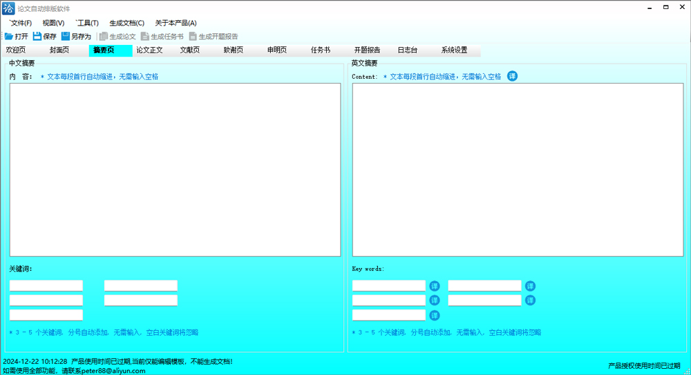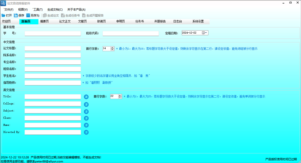 2、支持封面页和摘要页中文内容翻译为英文(调用百度翻译接口,翻译结果仅供参考)。
