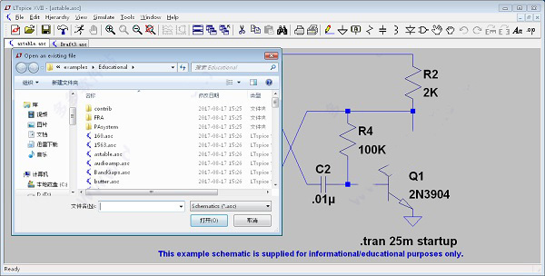您可以通过手动打开或捕获其他原理图程序生成的网表,这些文件通常具有“。cir”的文件扩展名,但“。net”和“。sp”也被理解。用于网表文件的文本编辑器可以将SPICE语法着色为可读性。菜单命令“工具”=>“颜色首选项”可用于调整编辑器中使用的颜色。如果网表的上下文是ASCII,则该文件存储为ASCII。否则文件格式为UNICODE,其中包含每种生活语言的每个字符,同时LTspice模拟器可以轻松读取ASCII和UNICODE。