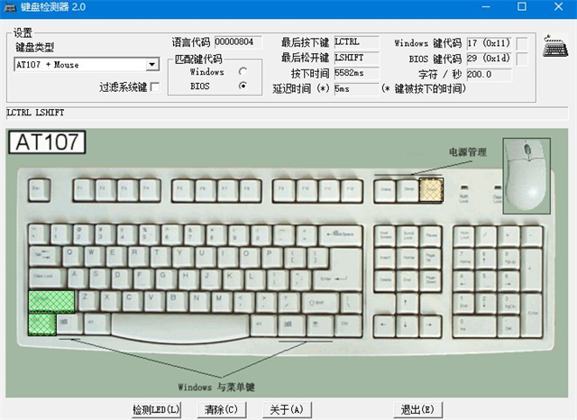 3、显示BIOS和Windows键盘扫描码