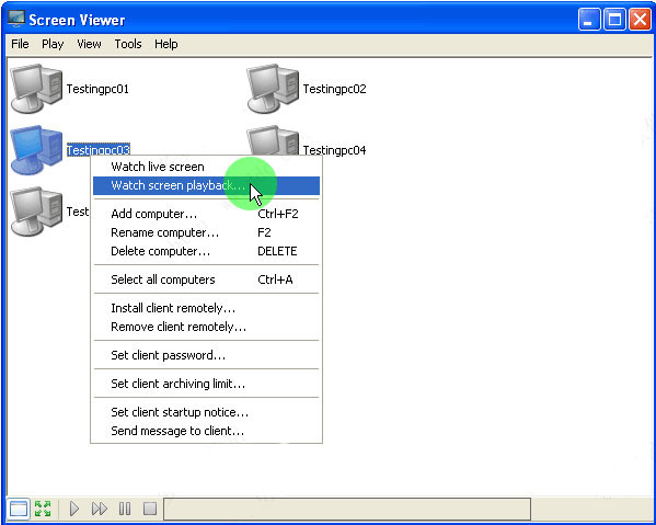 ①或者右键单击要观看其屏幕播放的计算机,然后单击观看屏幕播放…