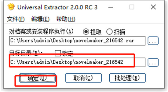 5、程序会默认提取文件的位置,当然,用户可以自己选择安装位置,然后点击确定即可