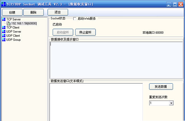 b、输入监听端口后,即创建了一个在指定端口上进行监听的TCP Server Socket。TCP Server Socket创建时,软件会自动启动TCP Server Socket处于监听状态,如下图: