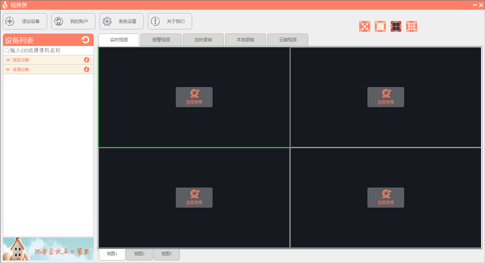视界美监控电脑版是由深圳市安嘉科技有限公司打造的一摄像监控软件,它需要与视界美网络摄像机配合使用,提供实时视频、报警视频、实时录制、视频回放等功能,可同时管理多个摄像头,支持多种型号的视界美摄像头,是您进行摄像管理的必备工具,并且通过该软件,可以进行双向的语音对讲操作,包括了各种视频的截图。视界美电脑版简单的用户操作界面,可以让用户轻松快捷的即可完成监控的查看,赶紧来下载使用吧!