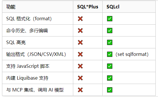Oracle SQLcl与SQL*Plus关键功能一览: